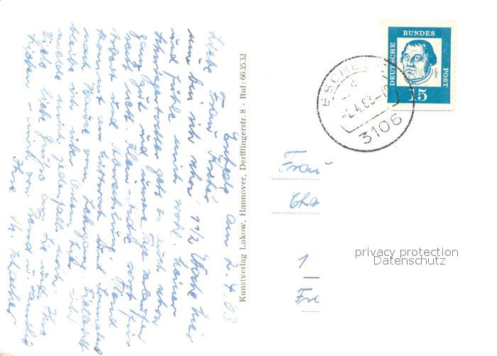 73743678 alte Postkarte Eschede Kirche Schule Hotel Drei Linden Aschauteich Aschaupartien Landhaus Schelploh Badeanstalt postalisch gelaufen Erhaltung siehe scans [WerneD78] KatCode: 11110003351009