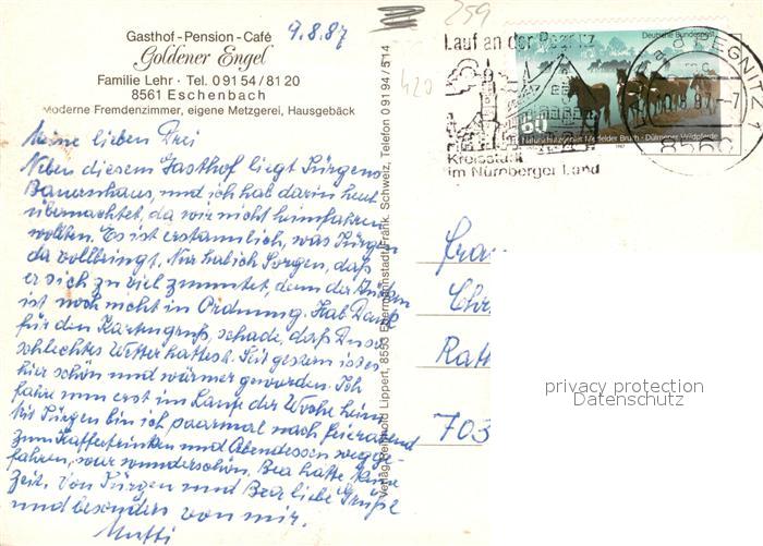 73569828 alte Postkarte Eschenbach Mittelfranken Gasthof Pension Goldener Engel Gaststube Panorama postalisch gelaufen Erhaltung siehe scans [WerneD78] KatCode: 11110009574147