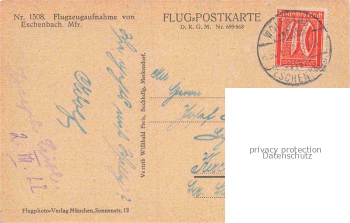 34145253 alte Postkarte Eschenbach Mittelfranken Pommelsbrunn Bayern Fliegeraufnahme Nr. 1508 postalisch gelaufen Erhaltung siehe scans [FriedD77] KatCode: 11110009574147