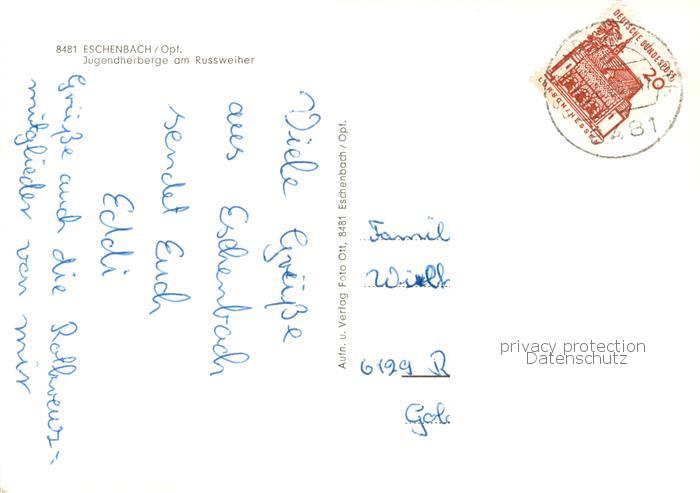 73860708 alte Postkarte Eschenbach Oberpfalz Jugendherberge Speisesaal Russweiher Landschaftspanorama postalisch gelaufen Erhaltung siehe scans [FriedD77] KatCode: 11110009374117