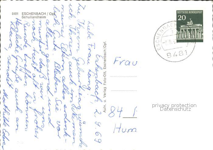 72142870 alte Postkarte Eschenbach Oberpfalz Schullandheim postalisch gelaufen Erhaltung siehe scans KatCode: 11110009374117