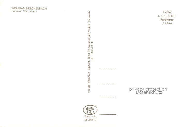 73216112 Eschenbach Wolframs Unteres Tor 14. Jhdt. Altstadt Kirche postalisch nicht gelaufen Erhaltung siehe scans [FriedD77] KatCode: 11110009571229