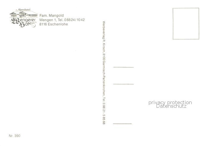 73760124 Eschenlohe Alpenhotel Wengener Hof postalisch nicht gelaufen Erhaltung siehe scans [WerneD78] KatCode: 11110009180114