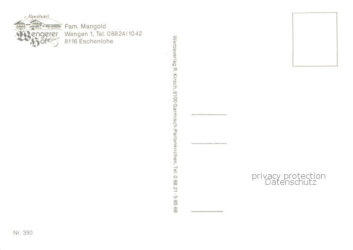 73760872 Eschenlohe Alpenhotel Wengererhof postalisch nicht gelaufen Erhaltung siehe scans [WerneD78] KatCode: 11110009180114