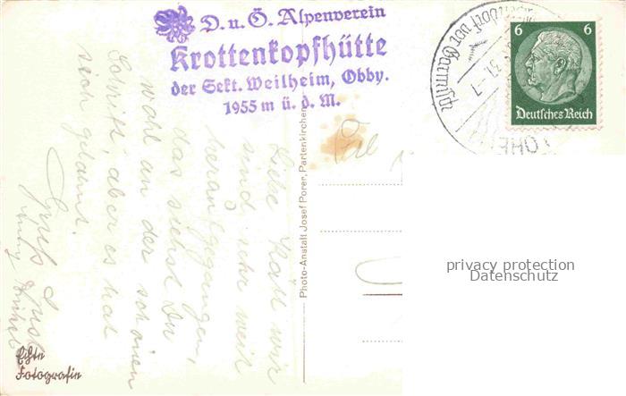 74150414 alte Postkarte Eschenlohe Garmisch-Partenkirchen Bayern Krottenkopf mit Krottenkopfhuette des Deutsch-oesterreichischen Alpenvereins postalisch gelaufen Erhaltung siehe scans [FriedD77] KatCode: 11110009180114