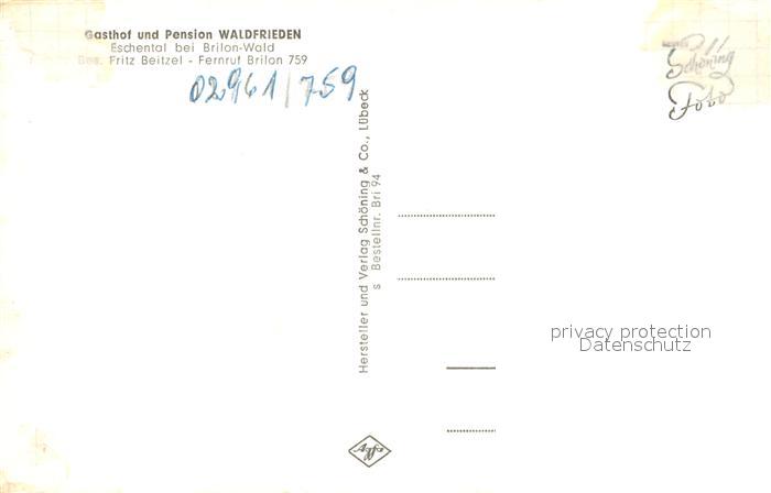73301124 Eschental Brilon Gasthof-Pension Waldfrieden postalisch nicht gelaufen Erhaltung siehe scans [PaolaD17] KatCode: 11110005958012