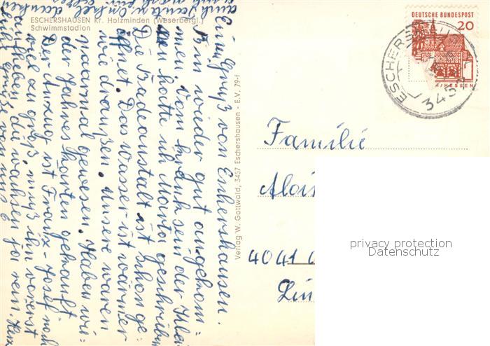 73760262 alte Postkarte Eschershausen Holzminden Schwimmstadion postalisch gelaufen Erhaltung siehe scans [LiesaD40] KatCode: 11110003255013