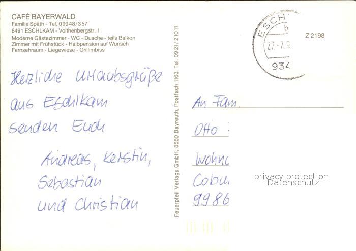 72448648 alte Postkarte Eschlkam Cafe Bayerwald Hoher Bogen postalisch gelaufen Erhaltung siehe scans KatCode: 11110009372124