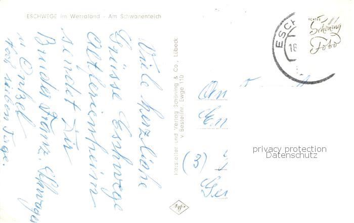 73812010 alte Postkarte Eschwege Am Schwanenteich postalisch gelaufen Erhaltung siehe scans [WerneD78] KatCode: 11110006636003