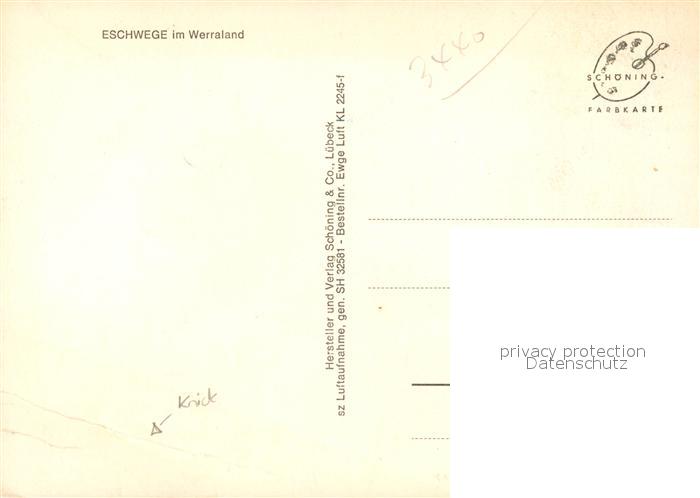 73613273 Eschwege Fliegeraufnahme postalisch nicht gelaufen Erhaltung siehe scans [KathaD81] KatCode: 11110006636003