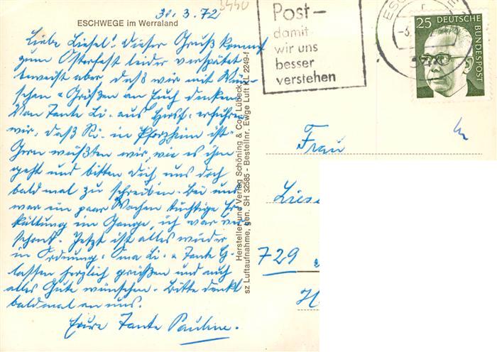 73944372 alte Postkarte Eschwege Fliegeraufnahme postalisch gelaufen Erhaltung siehe scans [FriedD77] KatCode: 11110006636003