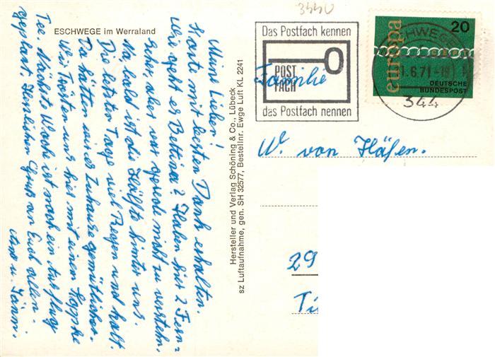 73944365 alte Postkarte Eschwege Fliegeraufnahme postalisch gelaufen Erhaltung siehe scans [FriedD77] KatCode: 11110006636003