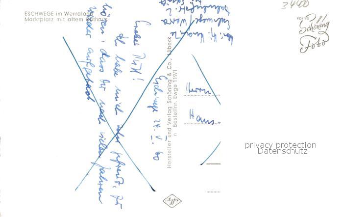 43350858 alte Postkarte Eschwege Marktplatz altes Rathaus postalisch gelaufen Erhaltung siehe scans [KathaD81] KatCode: 11110006636003