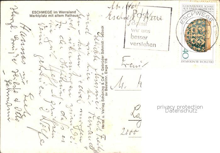72051205 alte Postkarte Eschwege Marktplatz Altes Rathaus Fachwerkhaus postalisch gelaufen Erhaltung siehe scans KatCode: 11110006636003