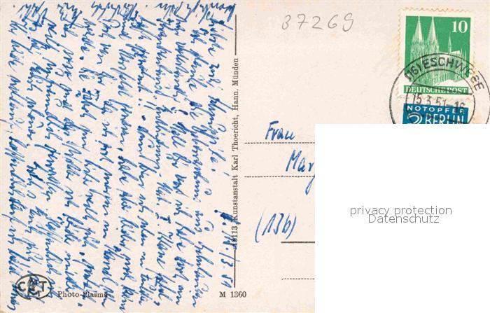 72890368 alte Postkarte Eschwege Marktplatz Ehrenmal Schloss Pommertor Werra Wappen postalisch gelaufen Erhaltung siehe scans [FriedD77] KatCode: 11110006636003