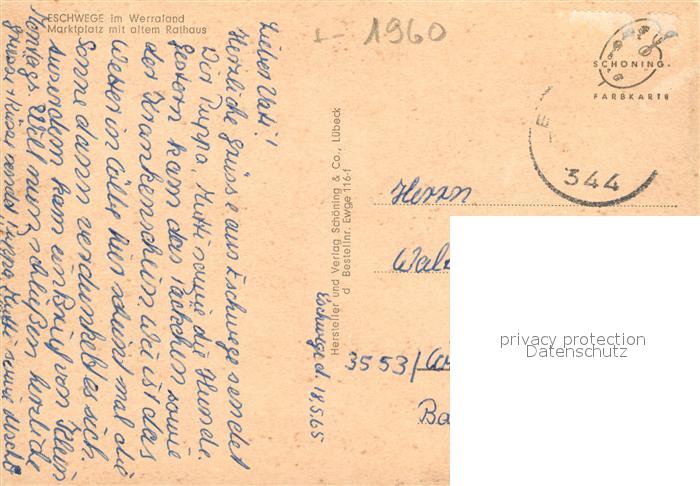 73054413 alte Postkarte Eschwege Marktplatz Rathaus postalisch gelaufen Erhaltung siehe scans [KathaD81] KatCode: 11110006636003