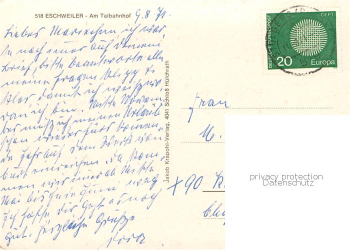 73821921 alte Postkarte Eschweiler Rheinland Am Talbahnhof postalisch gelaufen Erhaltung siehe scans [WerneD78] KatCode: 11110005354012