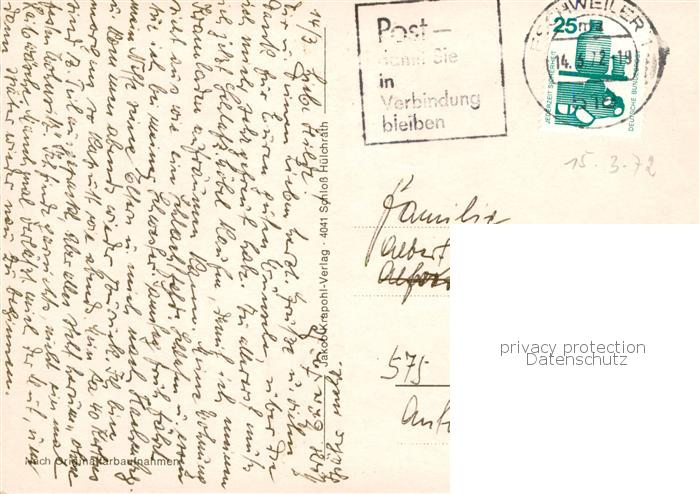 73830460 alte Postkarte Eschweiler Rheinland An der Inde Rosenallee Schnellengasse Kreissparkasse Roetgener Burg BIAG Zukunft postalisch gelaufen Erhaltung siehe scans [WerneD78] KatCode: 11110005354012
