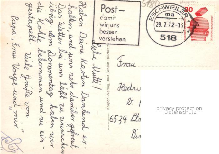 73860624 alte Postkarte Eschweiler Rheinland Kreissparkasse Rosenallee Sternhaus Hochhaus Am Talbahnhof Hallenbad postalisch gelaufen Erhaltung siehe scans [FriedD77] KatCode: 11110005354012
