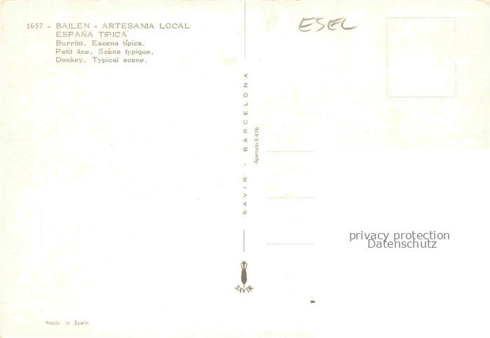 74154635 Esel Donkey Ane Burro Asno Asino– Bailen Artesania Local Espana postalisch nicht gelaufen Erhaltung siehe scans [SanaeD93] KatCode: 22540000001700