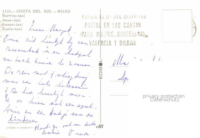 alte Postkarte Esel Tiere Burros-Taxi Costa del Sol Mijas postalisch gelaufen Erhaltung siehe scans [PaolaD17]