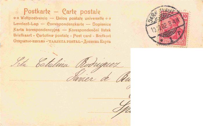 74011741 alte Postkarte Esel Tiere Kind Hut Violine Darmstadt postalisch gelaufen Erhaltung siehe scans [SanaeD93] KatCode: 22540000001700
