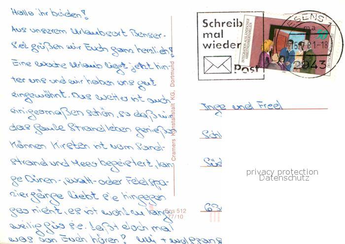 72771975 alte Postkarte Esens Bensersiel Kirche Hafen Ahnensaal Strand postalisch gelaufen Erhaltung siehe scans [LiesaD40] KatCode: 11110003462003