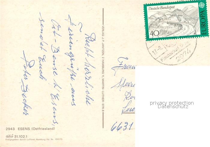 73634104 alte Postkarte Esens Fliegeraufnahme postalisch gelaufen Erhaltung siehe scans [WerneD78] KatCode: 11110003462003