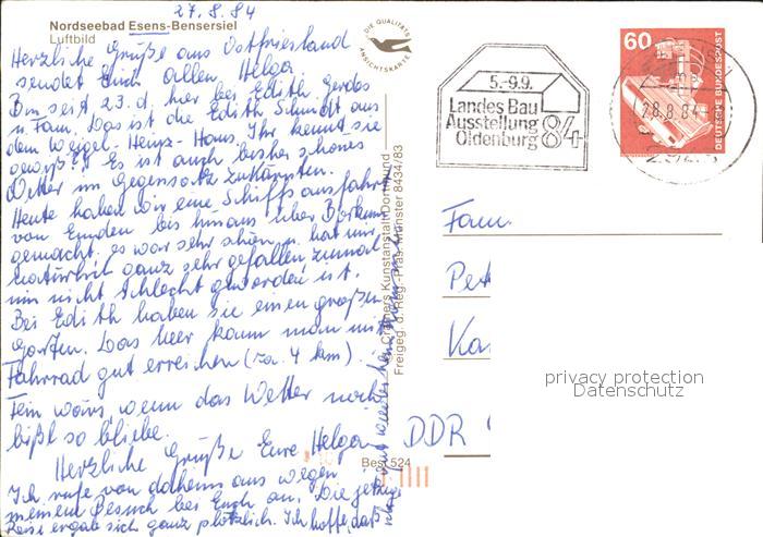 72370330 alte Postkarte Esens Nordseebad Bensersiel Luftbild postalisch gelaufen Erhaltung siehe scans KatCode: 11110003462003