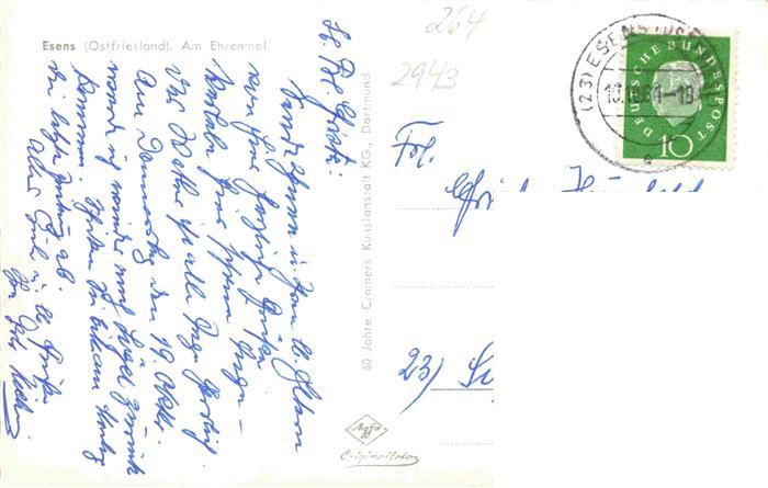 73971620 alte Postkarte Esens Partie am Ehrenmal postalisch gelaufen Erhaltung siehe scans [FriedD77] KatCode: 11110003462003