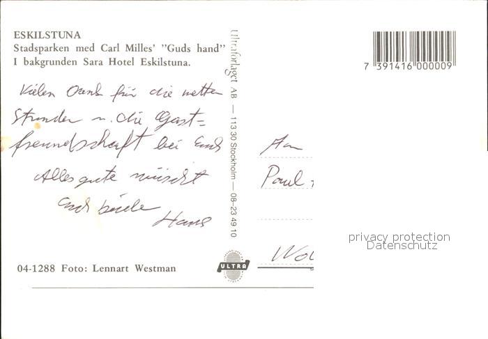 Eskilstuna Stadtpark mit Monument Guds Hand Carl Miles postalisch nicht gelaufen