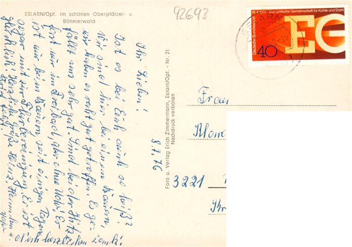 73884530 alte Postkarte Eslarn Knabenkapelle Teilansicht Cafe Waldhaus Tillyplatz Freibad Torfhaeusl postalisch gelaufen Erhaltung siehe scans [WerneD78] KatCode: 11110009374118