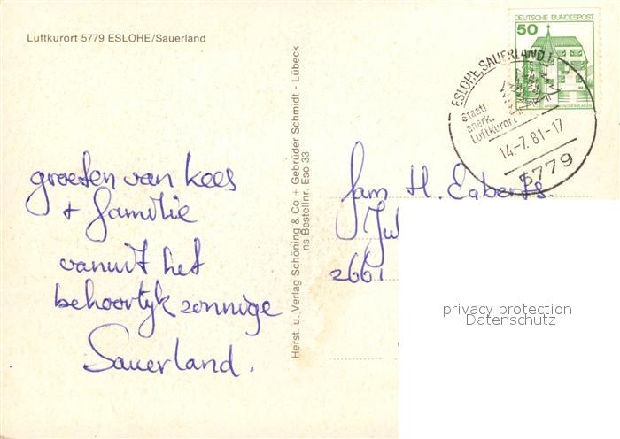 73311776 alte Postkarte Eslohe Sauerland Kirchenpartie postalisch gelaufen Erhaltung siehe scans [LiesaD40] KatCode: 11110005958016
