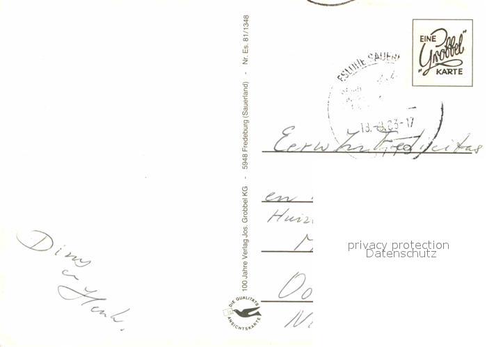 72872177 alte Postkarte Eslohe Sauerland Ponyhof Kirchenpartie postalisch gelaufen Erhaltung siehe scans [LiesaD40] KatCode: 11110005958016