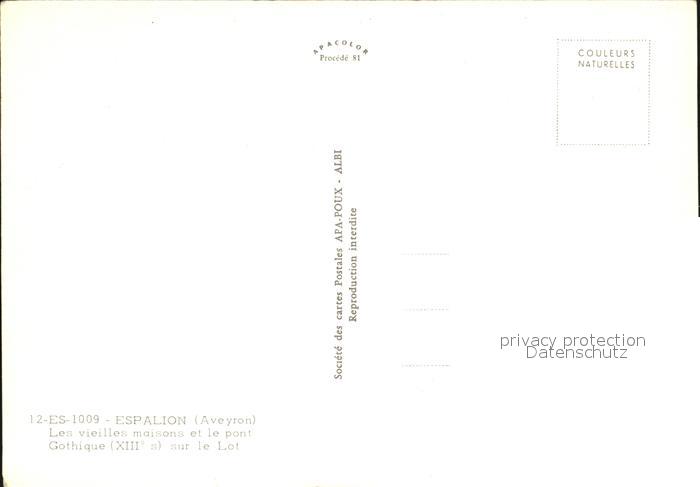 12487481 Espalion Pont Gothique postalisch nicht gelaufen Erhaltung siehe scans KatCode: 11170012212096