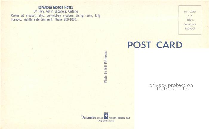 Espanola Ontario Motor Hotel postalisch nicht gelaufen Erhaltung siehe scans [FriedD77]