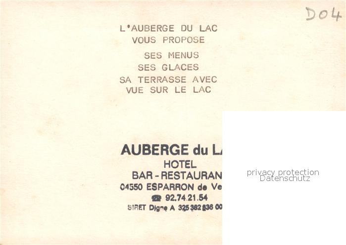 13585381 Esparron-de-Verdon Le Lac du barrage Greoux les Bain Kuenstlerkarte postalisch nicht gelaufen Werbekarte (keine Postkarte) Erhaltung siehe scans [KathaD81] Werbekarte (keine Postkarte) Kath Katcode 11170004304081