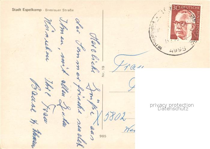 73672398 alte Postkarte Espelkamp Breslauer Strasse postalisch gelaufen Erhaltung siehe scans [FriedD77] KatCode: 11110005770008
