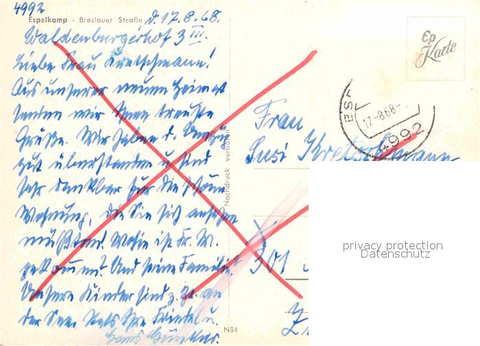 72646411 alte Postkarte Espelkamp Breslauer Strasse postalisch gelaufen Erhaltung siehe scans [WerneD78] KatCode: 11110005770008
