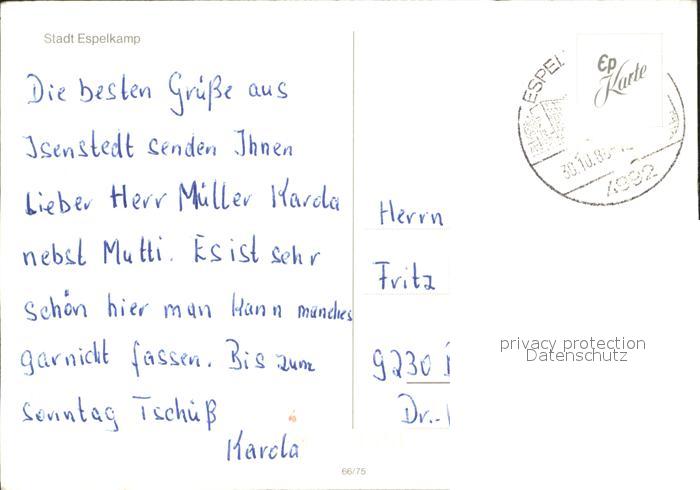 72048219 alte Postkarte Espelkamp Fliegeraufnahme postalisch gelaufen KatCode: 11110005770008