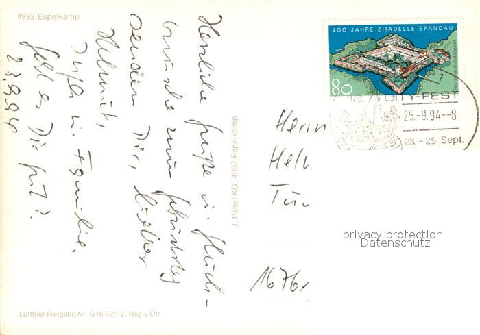 73667108 alte Postkarte Espelkamp Fliegeraufnahme postalisch gelaufen Erhaltung siehe scans [WerneD78] KatCode: 11110005770008