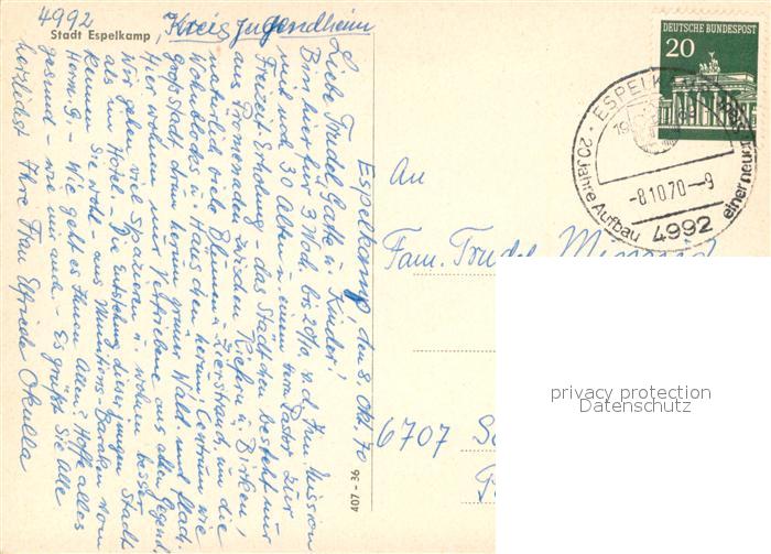 73667106 alte Postkarte Espelkamp Fliegeraufnahme postalisch gelaufen Erhaltung siehe scans [WerneD78] KatCode: 11110005770008