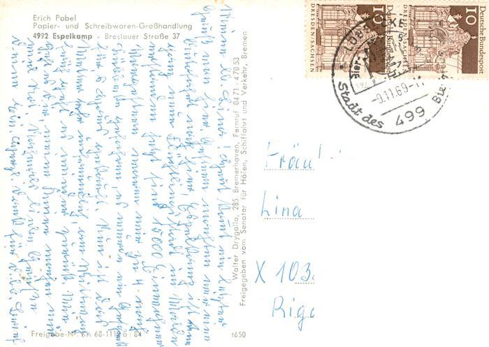 73877991 alte Postkarte Espelkamp Fliegeraufnahme postalisch gelaufen Erhaltung siehe scans [FriedD77] KatCode: 11110005770008