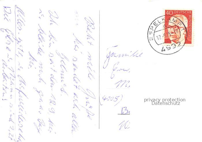 74023794 alte Postkarte Espelkamp Minden-Luebbecke NRW Springbrunnen Breslauer Strasse Wohnidyll Kirche Gabelhorst Freibad Berufsschule postalisch gelaufen Erhaltung siehe scans [FriedD77] KatCode: 11110005770008