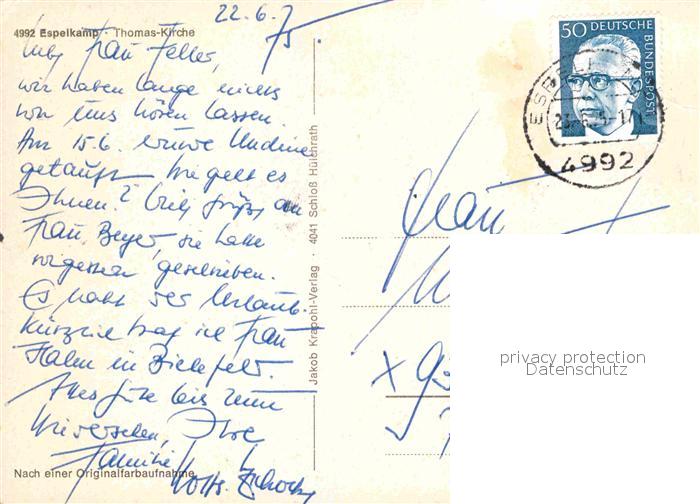 72645314 alte Postkarte Espelkamp Thomas Kirche postalisch gelaufen Erhaltung siehe scans [WerneD78] KatCode: 11110005770008
