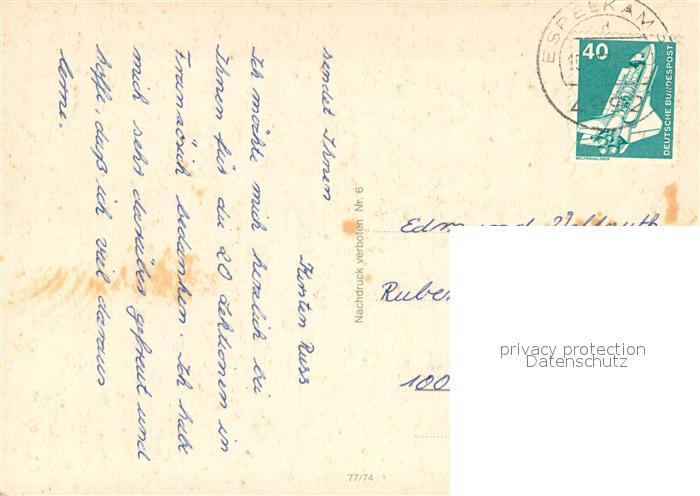 73672399 alte Postkarte Espelkamp Thomaskirche Breslauer Strasse Wohnblocks postalisch gelaufen Erhaltung siehe scans [FriedD77] KatCode: 11110005770008