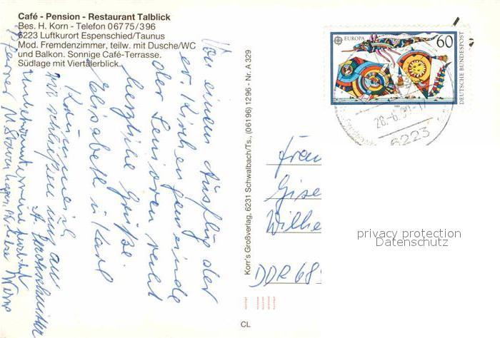 72829135 alte Postkarte Espenschied Cafe Pension Restaurant Talblick Terrasse postalisch gelaufen Erhaltung siehe scans [FriedD77] KatCode: 11110006439010