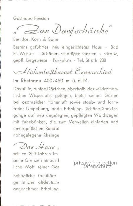 72096241 Espenschied Gasthaus zur Dorfschaenke postalisch nicht gelaufen Werbekarte (keine Postkarte) Erhaltung siehe scans KatCode: 11110006439010