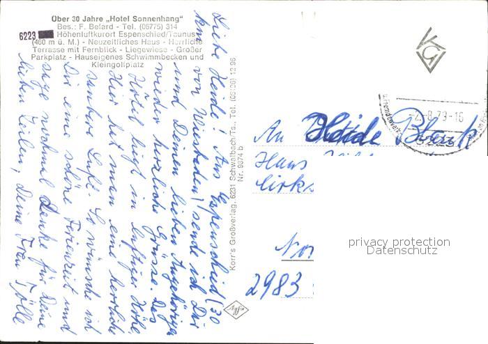 71998459 alte Postkarte Espenschied Hotel Sonnenhang postalisch gelaufen Erhaltung siehe scans KatCode: 11110006439010