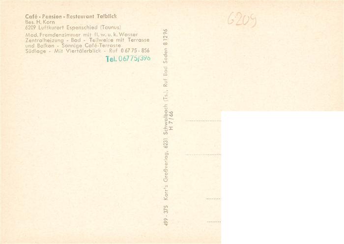 73936599 Espenschied Lorch Cafe Pension Talblick Gastraum Terrasse Garten postalisch nicht gelaufen Erhaltung siehe scans [FriedD77] KatCode: 11110006439010
